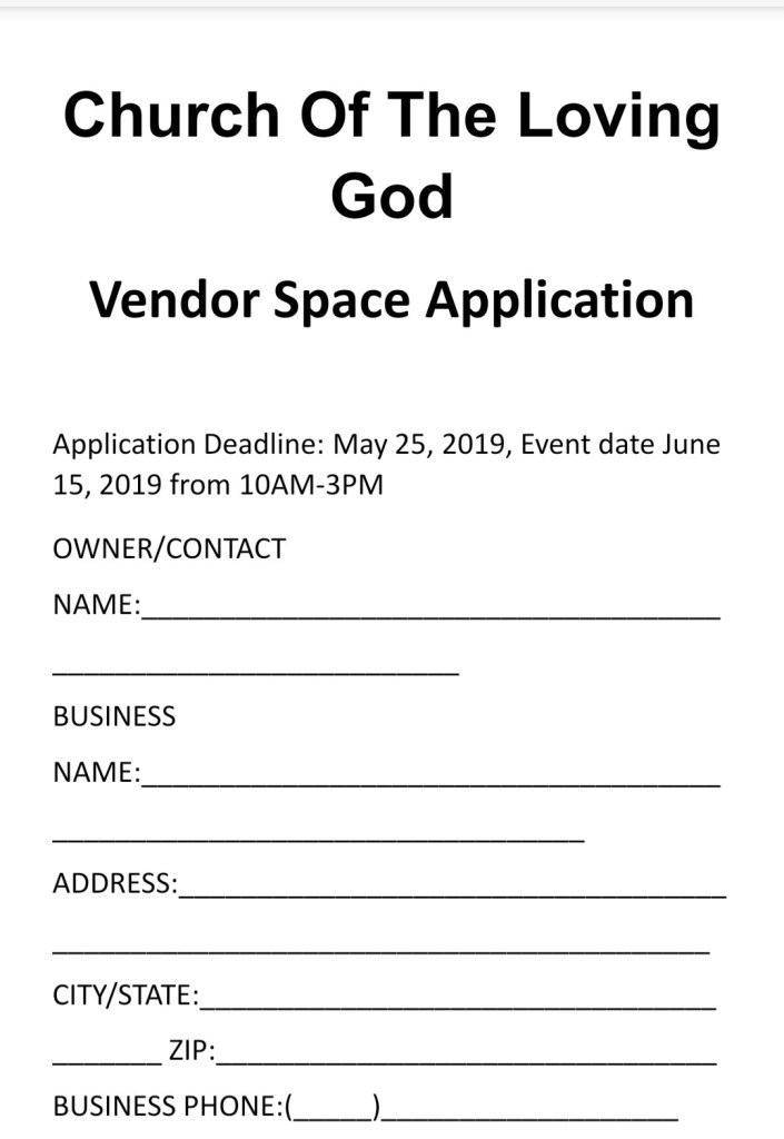Please be sure to download and fill out your vendor application. You can send your completed application via email to: churchoflovinggod@gmail.com or mail it to 4202 Delta Street, San Diego, CA 92113 Attn: Vendor/Crart